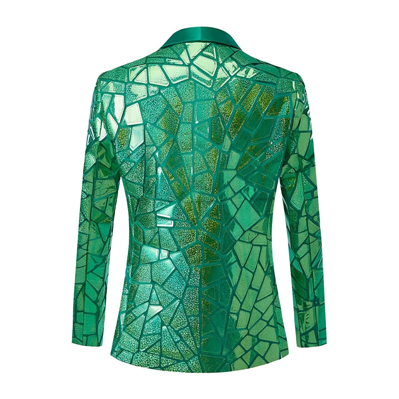 This stunning men's blazer features a rich fabric adorned with brilliant sequin crystals, creating a striking visual contrast. The blazer has a tailored fit, with a sleek lapel that complements its luxurious detailing. Ideal for formal or fashion-forward events, this statement piece combines traditional tailoring with bold, artistic flair. Own the moment.