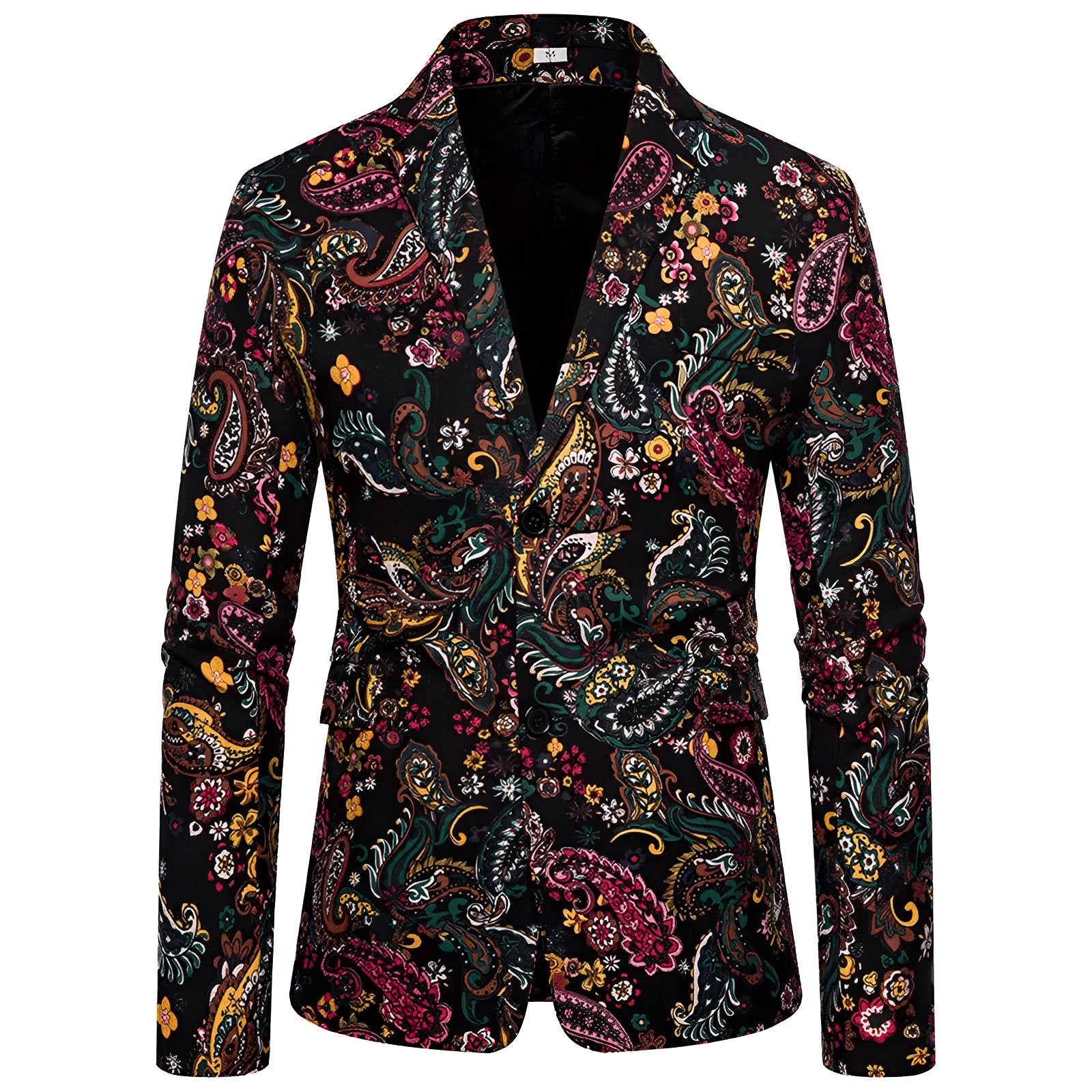 This striking blazer features luxurious craftsmanship and bold paisley detailing, exuding a contemporary and stylish appeal. The fitted design includes sleek lapels and two front pockets with flaps, complementing the overall tailored look. This versatile piece is perfect for both formal and semi-formal occasions, offering a modern take on traditional suiting. Be remembered.