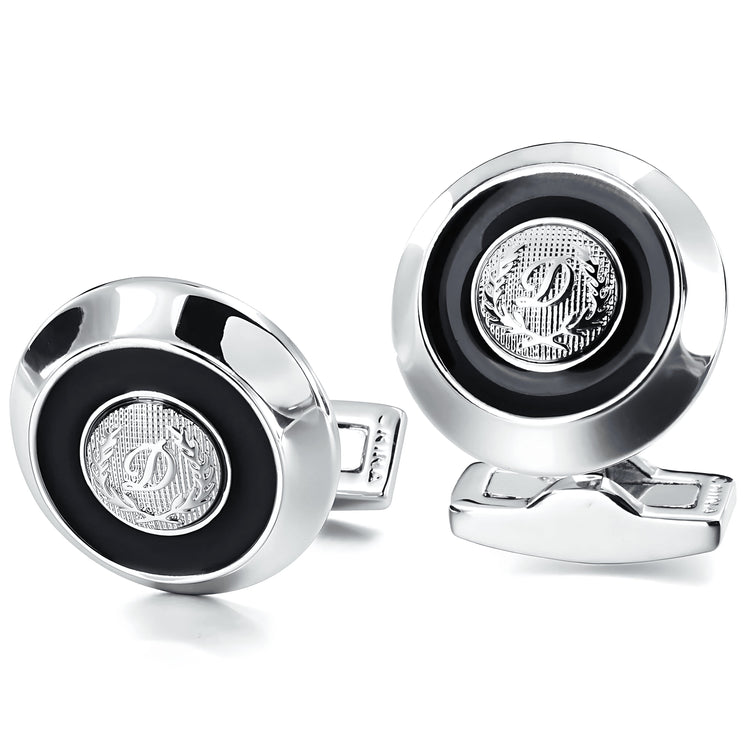 These cufflinks feature a sleek, modern design with a polished finish. The body is adorned with intricate detailing, giving this piece a modern and sophisticated appearance. The cufflinks are well-suited for formal occasions or polished business attire, enhancing both style and elegance.