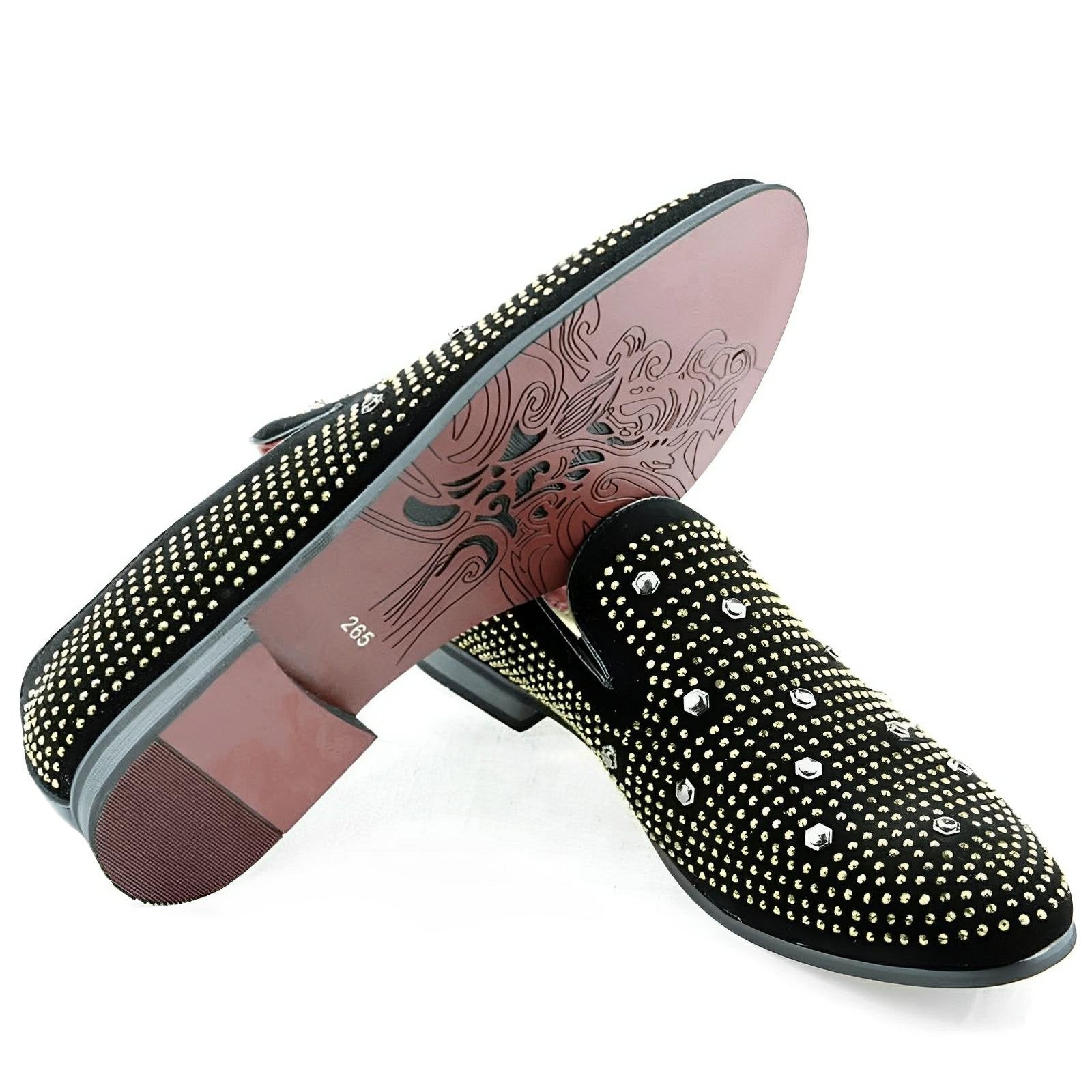 These striking loafers feature a brilliant crystal finish, enhancing their bold visual appeal and making them a statement piece. They showcase intricate rhinestone details along the upper, adding an elegant touch to the modern design. Perfect for formal occasions or events where one wishes to stand out, these loafers embody sophistication and uniqueness. Step into distinction.
