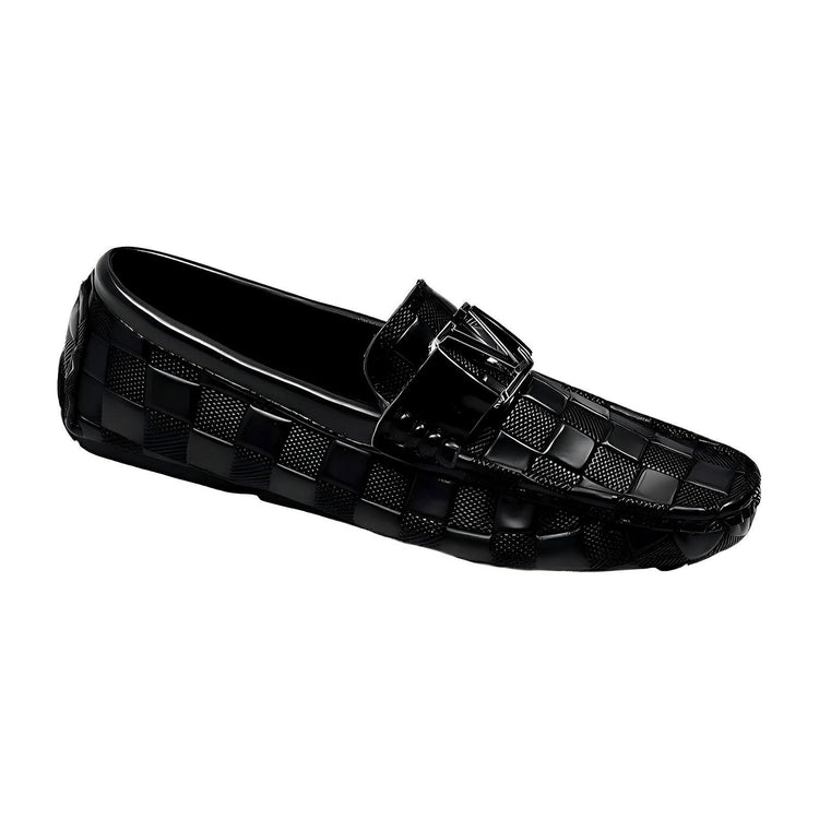 These sleek driving loafers feature a textured leather exterior, exuding a luxurious aesthetic. The slip-on design is complemented by an embellished upper, adding a touch of opulence. The shoes are crafted with a low profile heel for comfort, making them ideal for both formal and smart-casual settings. Steal the show.